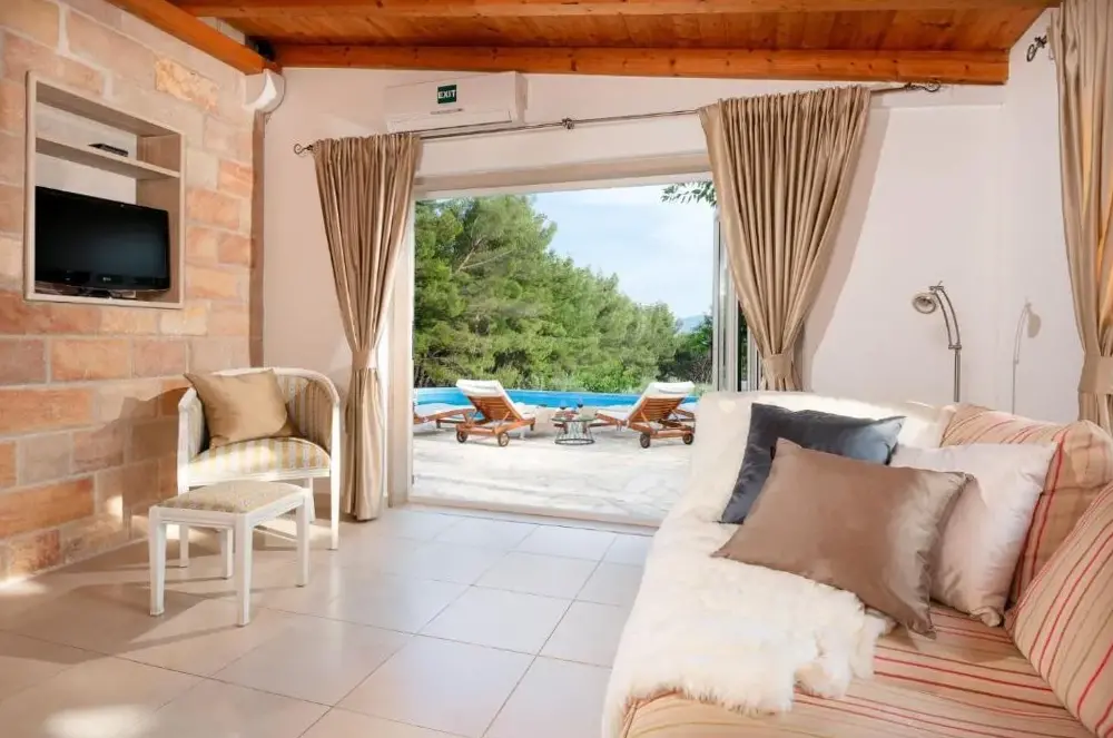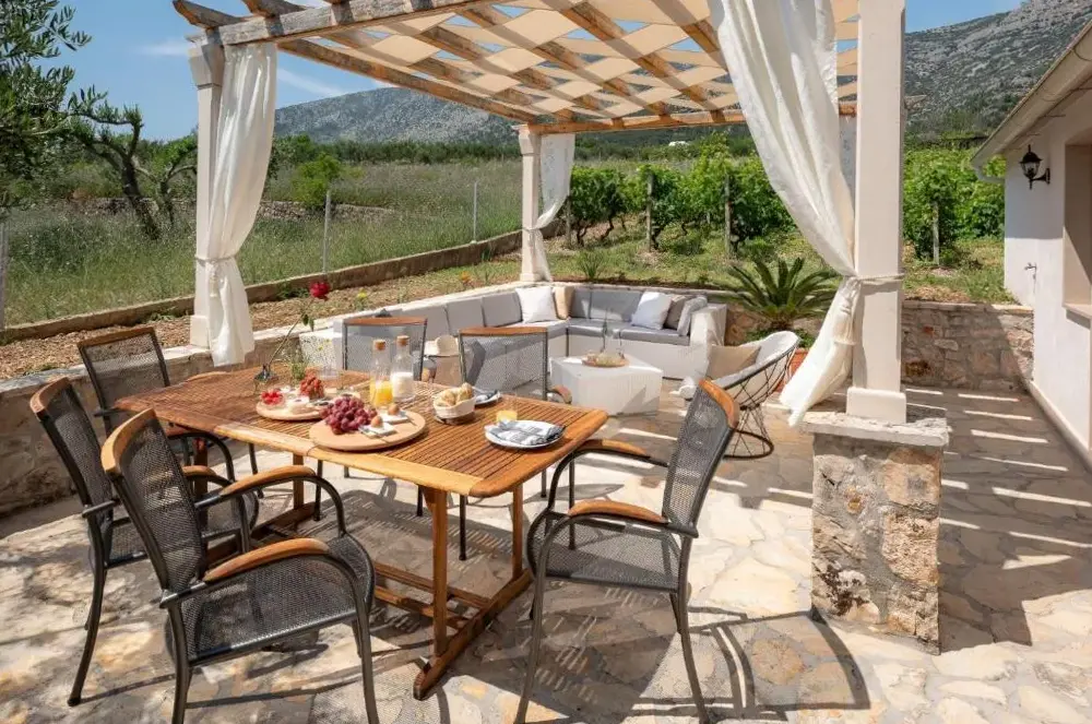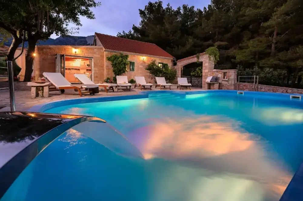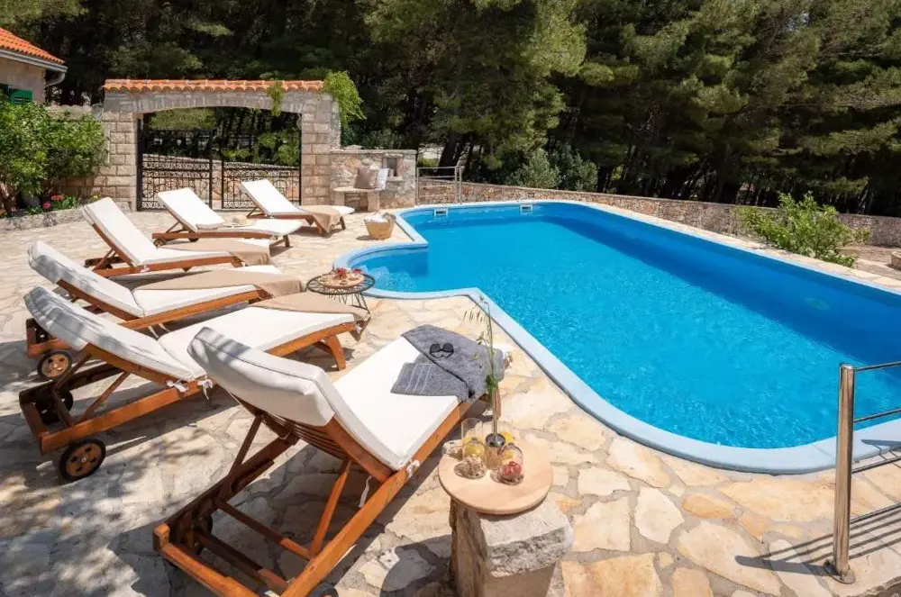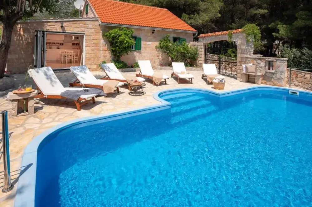 The villa is in a top location approx. 50 m above the famous Zlatni Rat beach. Despite the central location, it is very quiet, very private and without neighbors. You can walk to the city center in just over 20 minutes along the beautiful and well-kept promenade, where there are always small bars, restaurants and stalls. Even at night without any problems. There is a large selection of restaurants in Bol, we never cooked, we always went out to eat.